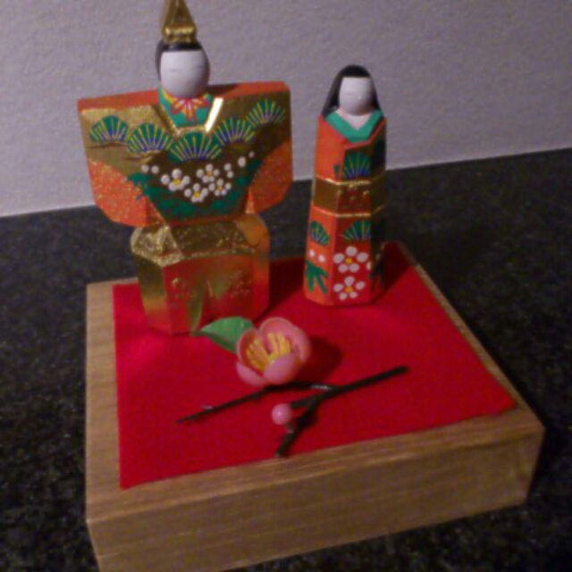 2012年2月23日 あのね 見えるかな もうこんなに梅の花が! 春のにおいがするね まだ寒いけどね うちのは立ち雛。こっちはちっちゃいほう。 もう一個大きいのも立ち雛。 やさしい春がやってきますように